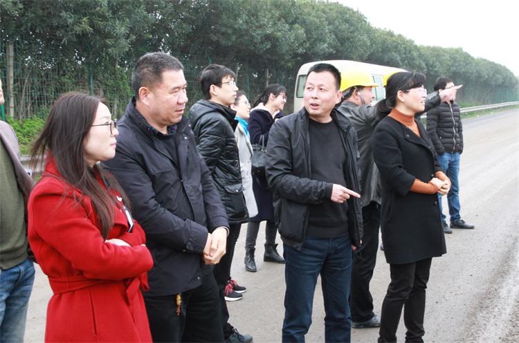 圖為3月20日下午,紹興市統計局副局長陳烈虎、統計局投資處處長李月紅、統計局工業處副處長祝淮等一行調研浙江瑞華化工有限公司工地現場,股份公司總經理助理傅沛琪陪同。