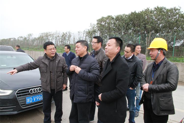 圖為3月21日下午,紹興市經信委黨組成員石雄文帶隊到浙江瑞華化工有限公司工地現場查看工程進展情況,股份公司總經理助理傅沛琪陪同。