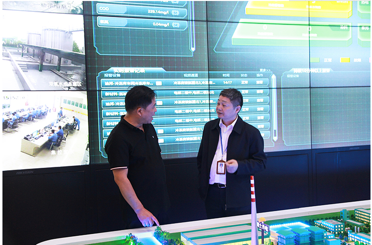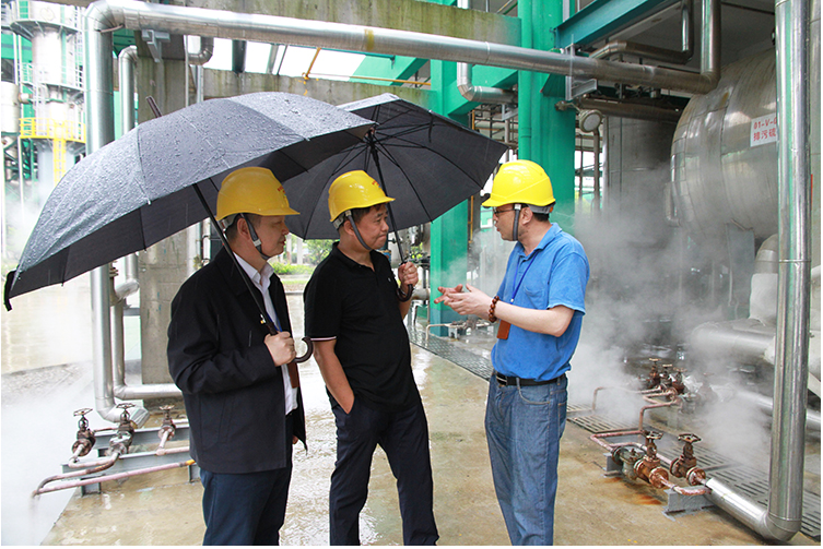 6月20日下午,浙江省生態環境廳排污權交易中心主任蔡文祥調研閏土生態工業園,股份公司總經理徐萬福陪同。