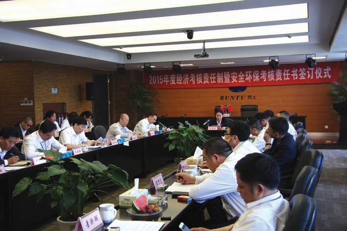 5月5日上午,2015年度經濟考核責任制暨安全環保考核責任書簽訂儀式在閏土大廈舉行,會議由股份公司總經理徐萬福主持。董事長阮靜波、副董事長阮加春、副總經理阮光棟、各子公司董事長、總經理等出席簽訂儀式。