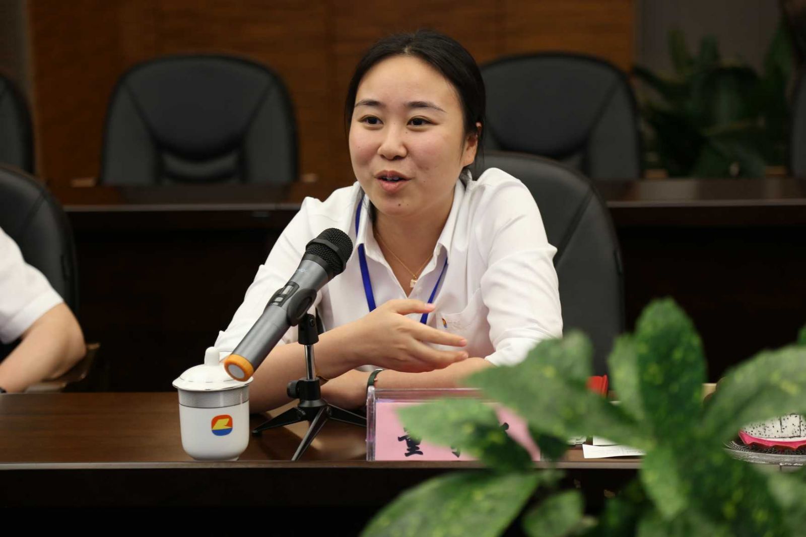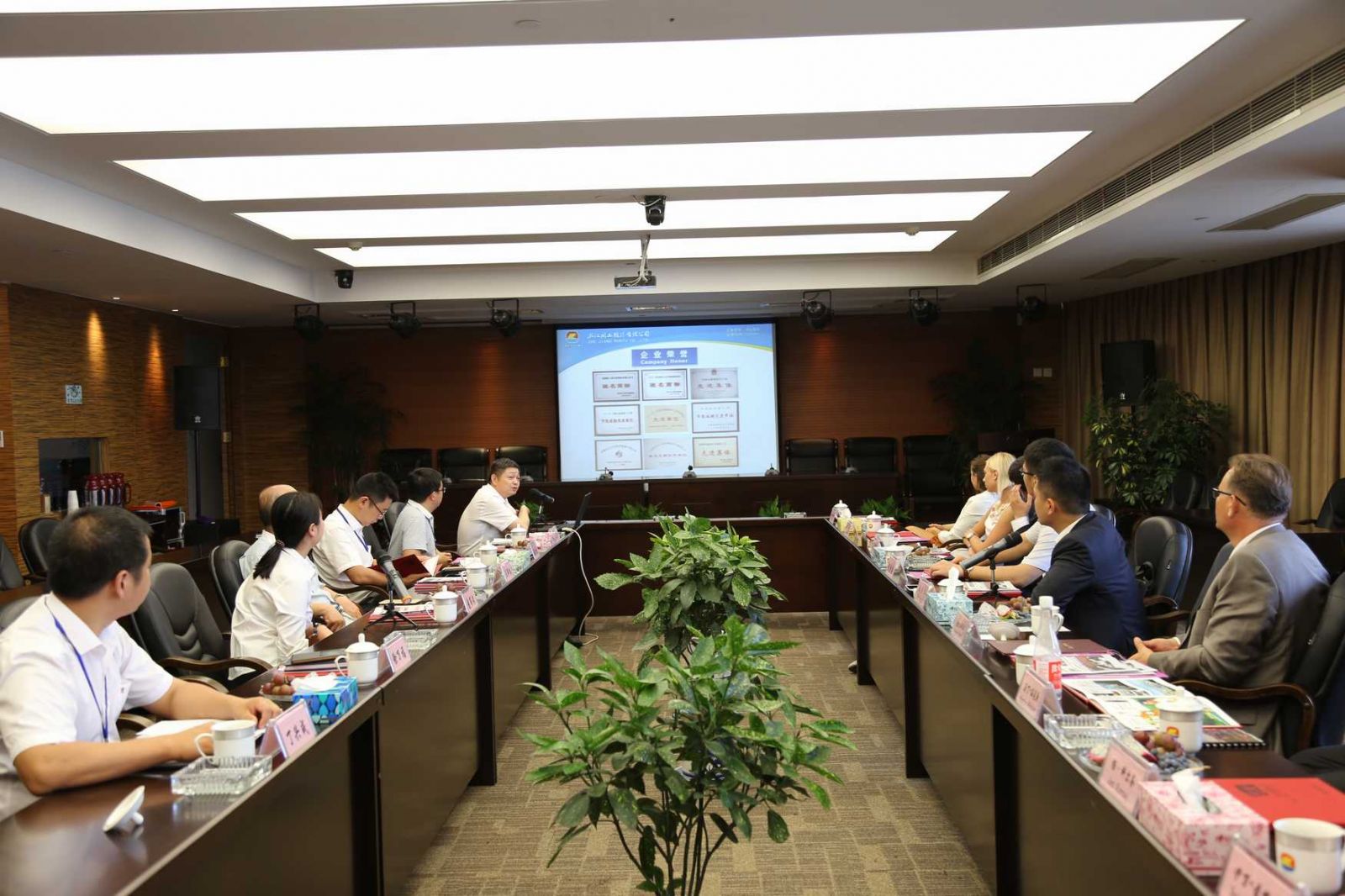 阮靜波董事長(zhǎng)在會(huì)上與來(lái)訪客人互動(dòng)交流